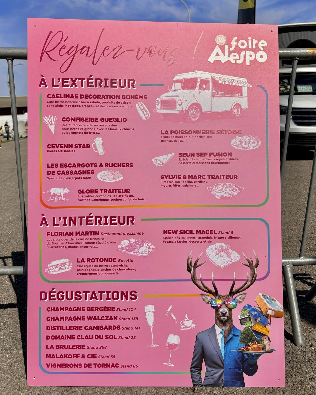 Cette présence est renforcée par un choix chromatique assumé. Un fond rosé vif, inattendu pour ce type d’événement, qui permet de moderniser la foire, d’augmenter sa visibilité et de créer une rupture dans les codes habituels des salons grand public.